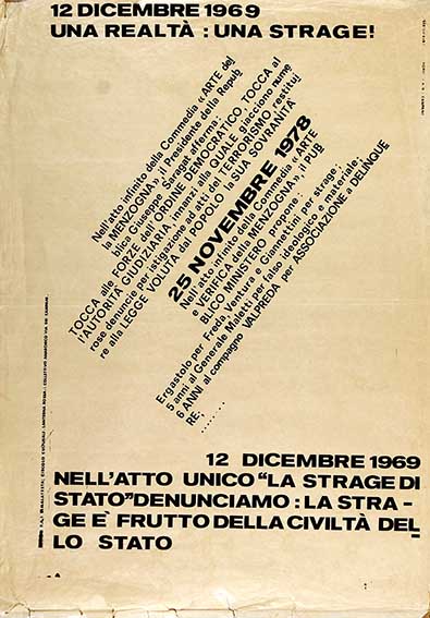 12 dicembre 1969, nell’atto unico “La strage di stato” denunciamo: “La strage è frutto della civiltà dello Stato”.