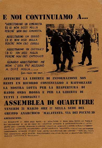Affinché la libertà di informazione non resti un ricordo continuiamo a rafforzare la nostra lotta per la riapertura di Radio Onda Rossa e per la libertà di tutti i compagni