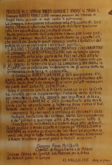 Quale giustizia si devono aspettare i compagni Ognibene e Franceschini da un potere giudiziario che “non riesce” ad accertare la verità sulle stragi di Piazza Fontana, di Brescia, dell’Italicus e “non riesce” a tenere in carcere generali golpisti e fascisti assassini?