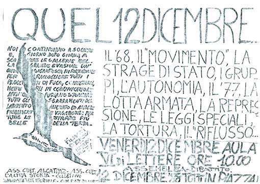 Il ’68, ilo “movimento”, la strage di stato, i gruppi, l’autonomia, il ’77, la lotta armata, la repressione, le leggi speciali, la tortura, il “riflusso” …