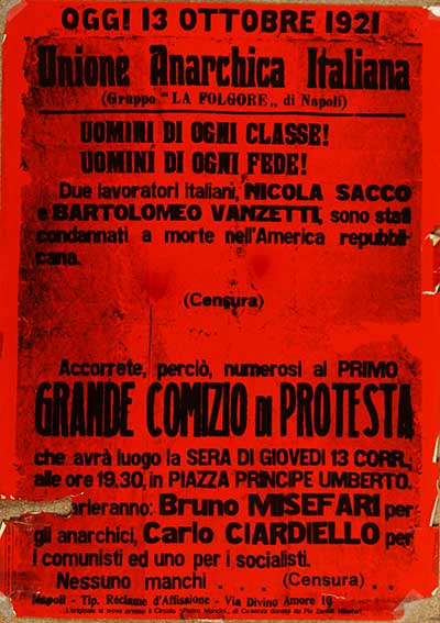 Oggi 13 ottobre 1921 … Uomini di ogni classe! Uomini di ogni fede! Due lavoratori italiani, Nicola Sacco e Bartolomeo Vanzetti, sono stati condannati a morte …