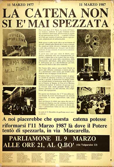 11 Marzo 1977 – 11 Marzo 1987 la catena non si è mai spezzata