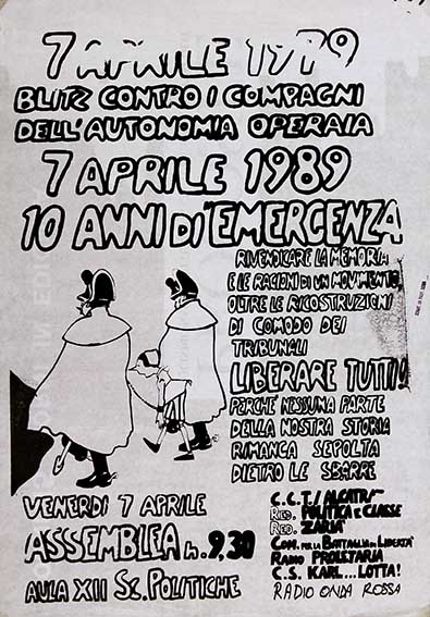 7 Aprile 1989, 10 anni di emergenza; rivendicare la memoira e le ragioni di un movimento oltre le ricostruzioni di comodo dei tribunali
