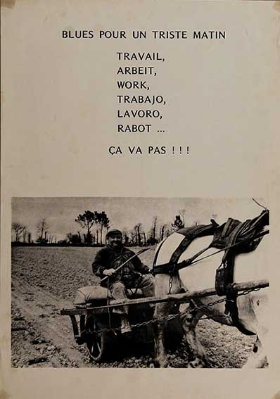 Blues pour un triste matin travail, arbeit, work, trabajo, lavoro, rabot … ca va pas!!! numero: 2258dimensione: 62x44 cm Catalogo Manifesti, Internazionali, Lotte operaie