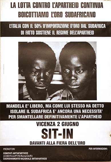 Boicottiamo l'oro sudafricano, manifestoLa lotta contro l’apartheid continua