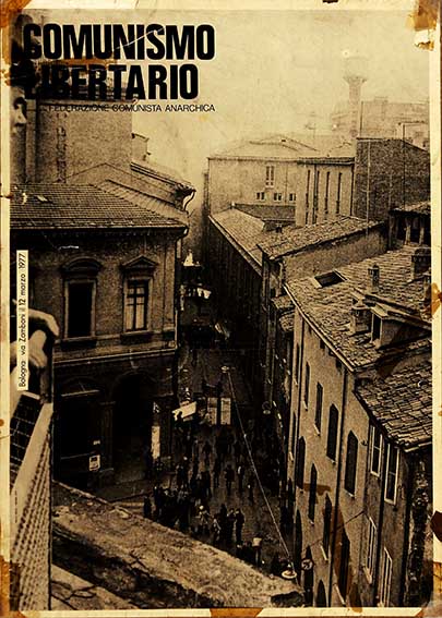 bologna: via zamboni il 12 marzo ’77 Comunismo libertario. Federazione comunista anarchica 1977 numero: 1974dimensione: 62x44cm Catalogo Manifesti, Movimento Anarchico