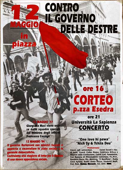 contro il governo delle destre 13 maggio ’77. Giorgiana Masi viene uccisa … 12 maggio ’94 Il governo Berlusconi con ministri fascisti … 12 maggio in piazza. [Vari] Roma, 1994 numero: 0736dimensione: 84x60cm Catalogo Manifesti, Movimento Anarchico
