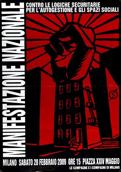 Contro le logiche securitarie… …per l’autogestione e gli spazi sociali Manifestazione nazionale Le compagne e i compagni di Milano Milano, 2009 numero: 1722dimensione: 100x70 cm Catalogo Manifesti, Centri sociali, laboratori e spazi occupati, Movimento Anarchico