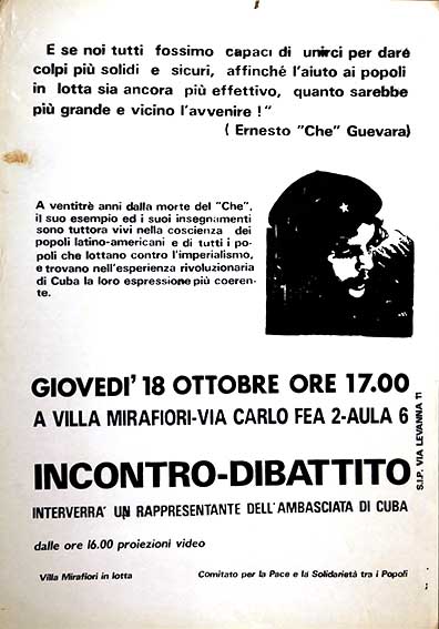Cuba, manifestoA ventitré anni dalla morte del “Che” il suo esempio ed i suoi insegnamenti sono tuttora vivi nella coscienza dei popoli latino-americani …