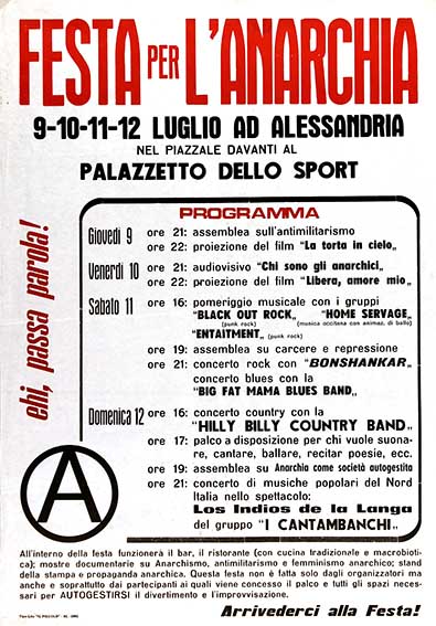 manifesto Festa per l'anarchia9-10-11-12 Luglio ad Alessandria