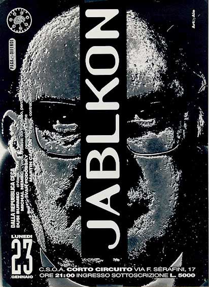 Jablkon Lunedì 23 Gennaio al C.S.O.A. Corto Circuito Cervello a sonagli Roma numero: 1374dimensione: 68x48 cm Catalogo Manifesti, Centri sociali, laboratori e spazi occupati, Cultura Antagonista