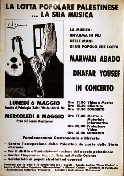 La lotta popolare palestinese … la sua musica La musica: un’arma in più nelle mani di un popolo che lotta Comitato per la pace e la solidarietà tra i popoli … Roma, 1989 numero: 0259dimensione: 98x70 cm Catalogo Manifesti, Cultura Antagonista, Internazionali