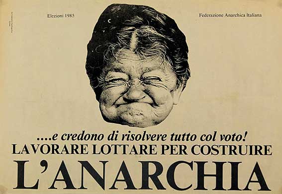 Lavorare, lottare per costruire l'anarchia, manifesto[Elezioni 1985] … e credono di risolvere tutto col voto!