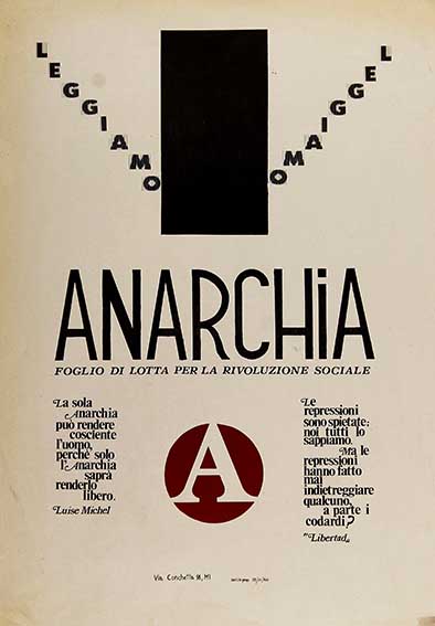 leggiamo anarchia La sola Anarchia può rendere cosciente l’uomo … (Luise Michel). Anarchia, foglio di lotta per la rivoluzione sociale Milano, 1980 numero: 0688dimensione: 84x60cm Catalogo Manifesti, Cultura Antagonista, Movimento Anarchico