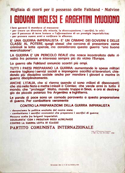Migliaia di morti per il possesso delle Falkland-Malvine, manifestoI giovani inglesi e argentini muoiono, i loro governi li mandano al massacro