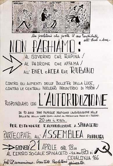 Contro gli aumenti delle bollette della luce, contro le centrali nucleari portatrici di morte! Da 10 anni 7000 famiglie praticano l’autoriduzione delle bollette della luce (Enel-Acea) al prezzo che pagano i padroni: 20 lire al Kwh