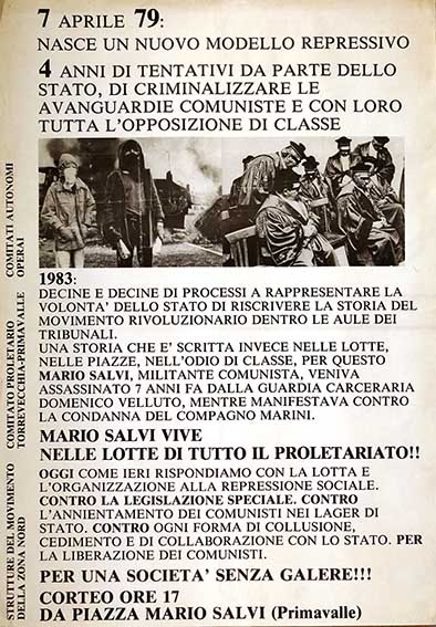 Mario Salvi vive nelle lotte di tutto il proletariato