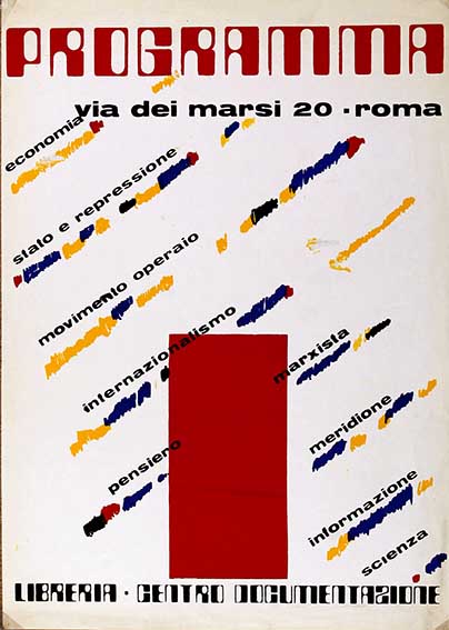 programma Economia, Stato e repressione, movimento operaio, internazionalismo, pensiero marxista … Libreria centro documentazione, via dei Marsi 20 Roma. Roma numero: 2005dimensione: 70x50cm Catalogo Manifesti, Centri sociali, laboratori e spazi occupati, Cultura Antagonista