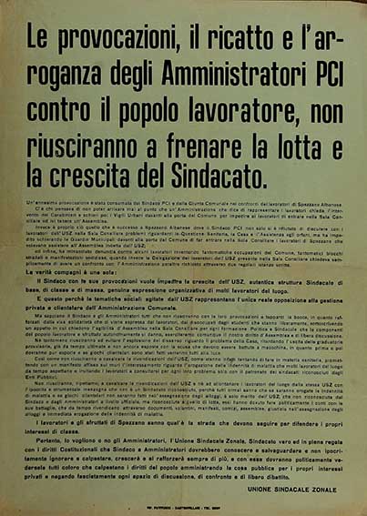 Le provocazioni, il ricatto e l’arroganza degli Amministratori PCI contro il popolo lavoratore, non riusciranno a frenare la lotta e la crescita del Sindacato.