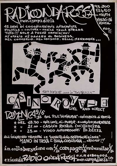 15 anni di comunicazione antagonista politica – cultura – musica della strada tutto!!! Solo a poche condizioni nè spazio nè denaro al business, del commercio, del consumo, delle menzogne …