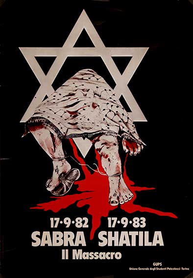 sabra shatila, il massacro 17 settembre 1982 – 17 settembre 1983. GUPS Riunione generale degli studenti palestinesi Torino, 1983 numero: 0956dimensione: 85x59cm Catalogo Manifesti, Internazionali
