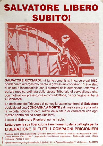 Salvatore Ricciardi, militante comunista, in carcere dal 1980, versa in gravissime condizioni