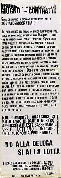 Il Parlamento ha emanato leggi sull’ordine pubblico in nome dell’antifascismo … Noi comunisti anarchici ci rifiutiamo di dare il nostro appoggio a queste basse manovre.